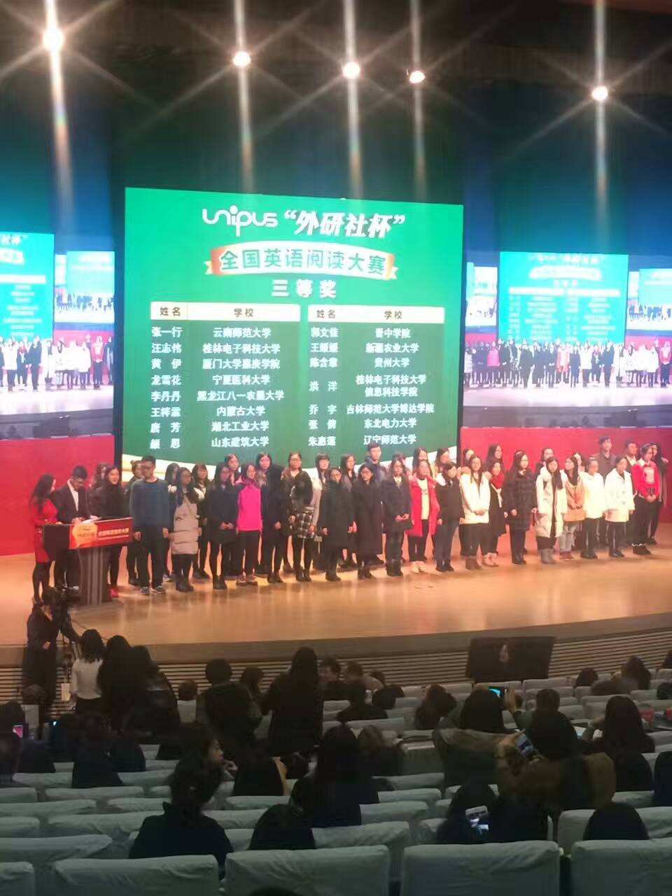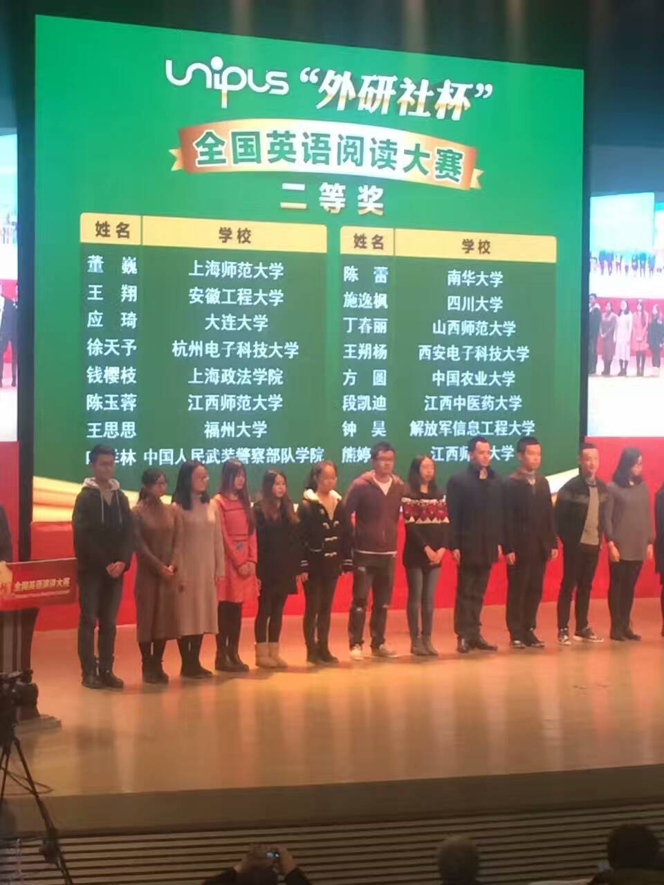 2016年12月8日至11日,“外研社杯”全国英语阅读总决赛在北京隆重举行。我院英语专业王思思同学荣获全国阅读总决赛二等奖,感谢阅读指导蒋炎媄老师。