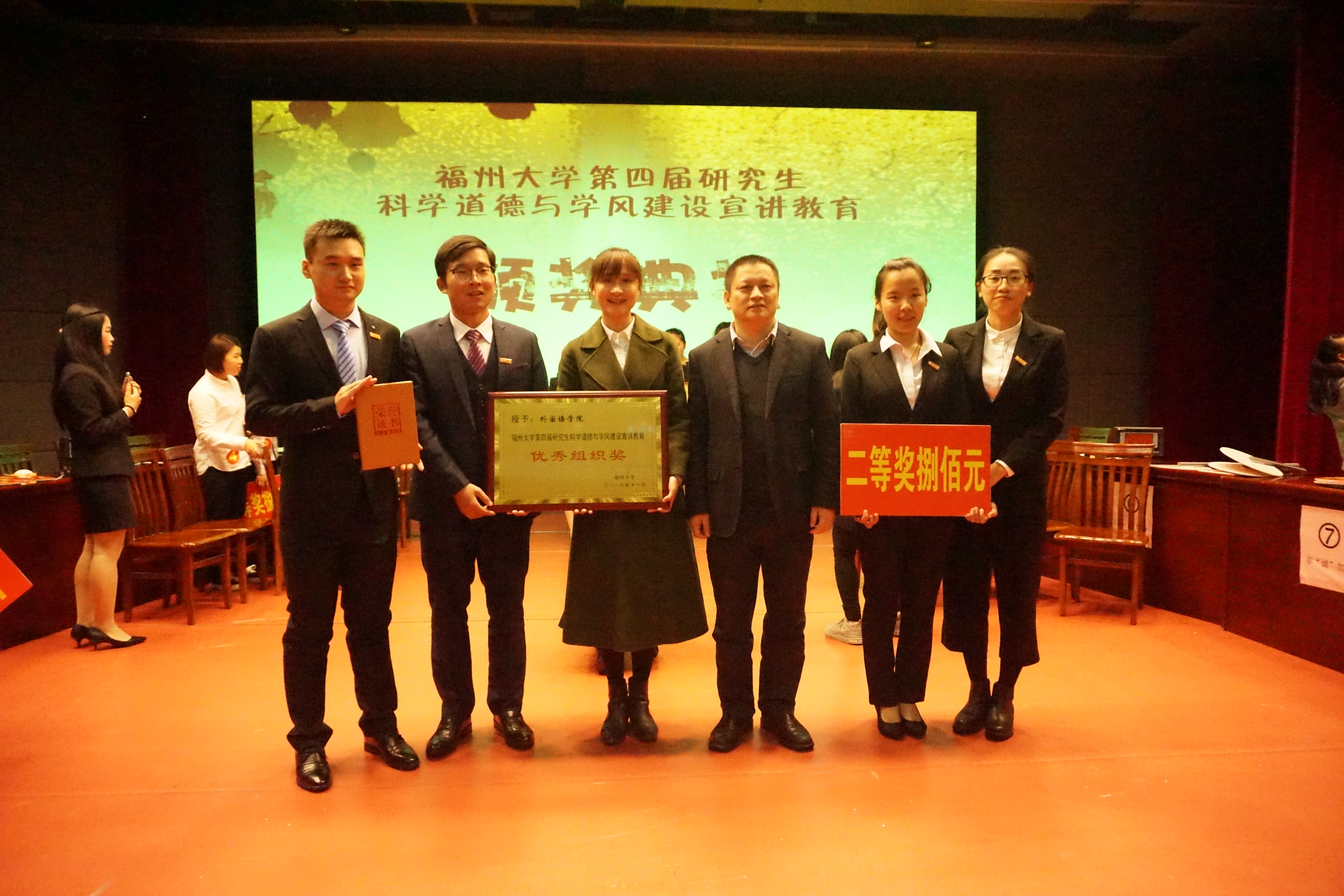晚七时许,活动开始。在学术诚信知识竞赛部分,各学院代表队经过个人必答与团队抢答等数环节的激烈比拼,经管学院的“科信战队”凭借自身过硬的知识积累,最终逆转局势冲击桂冠。emc易倍体育app“非诚勿扰”战队的表现同样令人印象深刻,在数轮对决中,来自emc易倍体育app研究生院的孔健、杨晨芳、王晓威和王亚萍等四位同学坚持步步为营,在对手紧咬比分的时刻依旧从容不迫,最终夺得了大赛二等奖。更值得一提的是,在随后的第四届研究生科学道德与学风建设宣讲教育颁奖仪式上,emc易倍体育app被授予“emc易倍体育app第四届研究生科学道德与学风建设宣讲教育”优秀组织奖,学院长久以来在研究生科学道德与学风建设方面付出的努力获得了有力的肯定与褒奖。