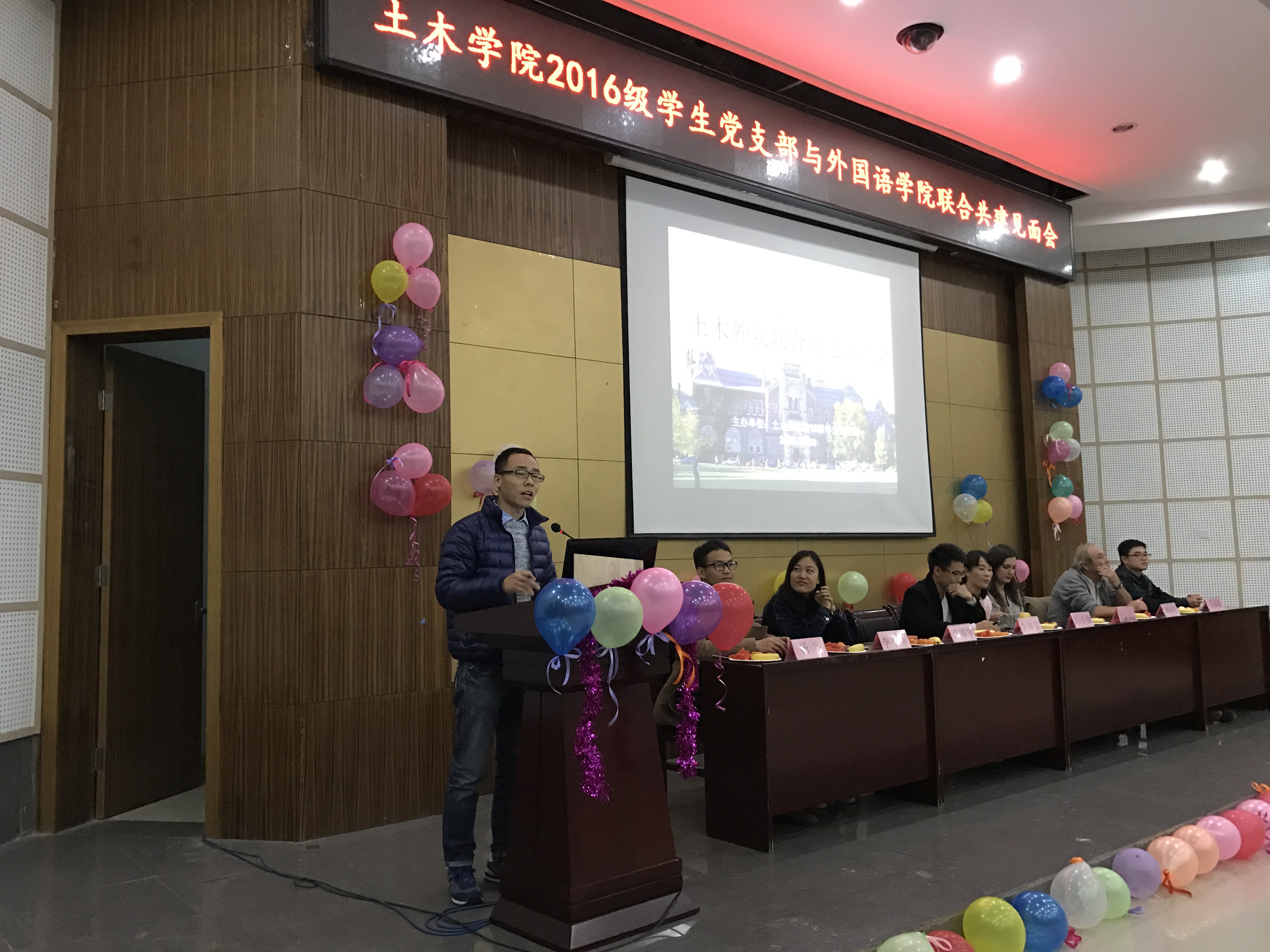 12月6日晚,emc易倍体育app与土木学院2016级学生党支部联合共建见面大会在土木学院院办多功能厅举行。emc易倍体育app辅导员许震宇老师,土木学院院长布鲁诺先生,辅导员江小敏、李坤皇、杨宇、李小倩老师莅临本次大会。此外,emc易倍体育app英语口语协会有幸邀请到外籍友人助阵此次大会。两院师生和外国友人欢聚土木多功能厅,拉开学生党支部共建序幕。
