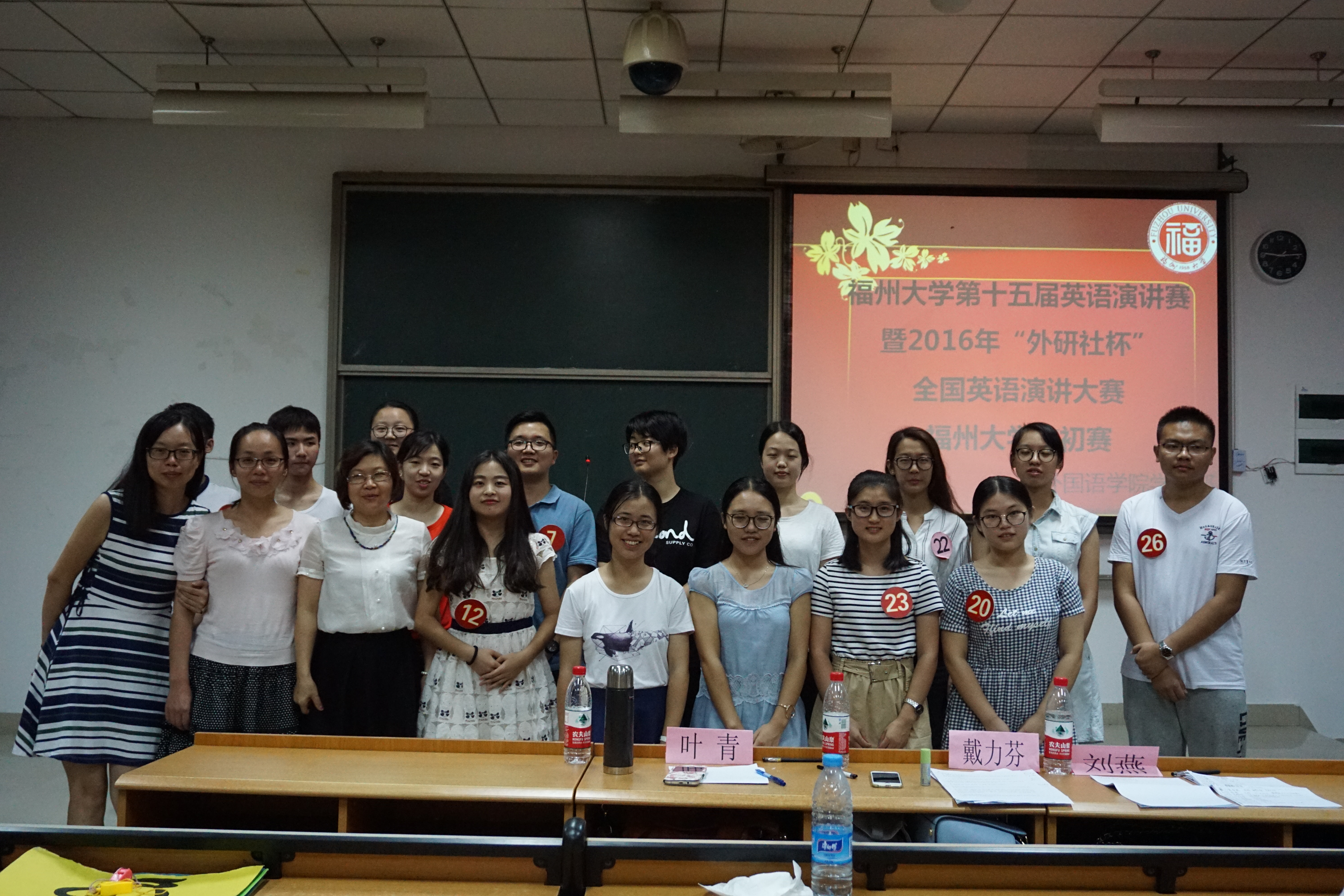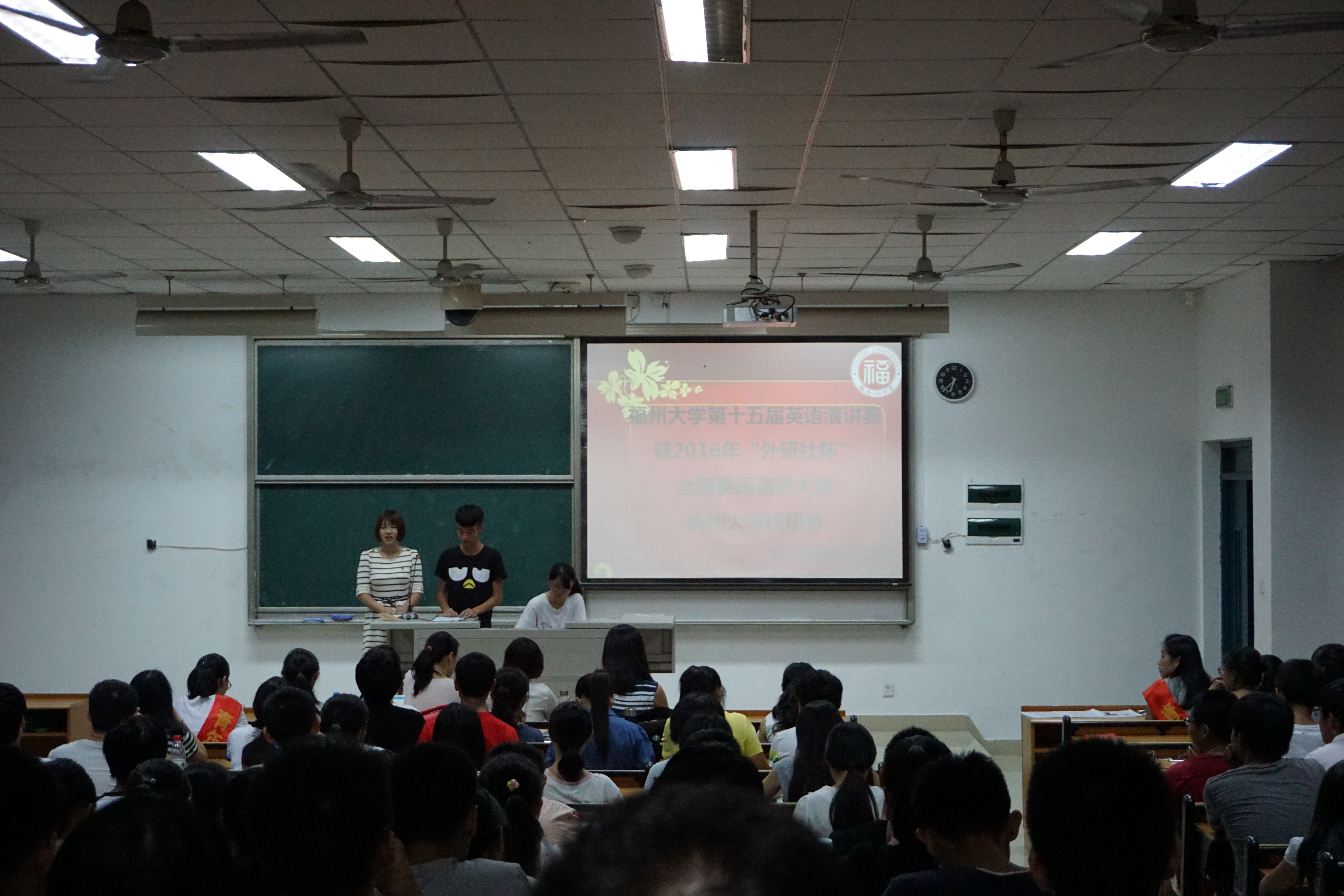 9月26号晚,由emc易倍体育app教务处、emc易倍体育app学生工作部(处)、emc易倍体育app共青团委主办,emc易倍体育app学术部承办的emc易倍体育app第十五届英语演讲比赛暨2016年“外研社杯”全国英语演讲大赛emc易倍体育app选拔赛校初赛在文2-105教室如期举行。来自emc易倍体育app各学院(除emc易倍体育app)的29名学子同台竞技,场面热烈。本次比赛邀请到戴力芬老师、叶青老师和刘燕老师担任评委。