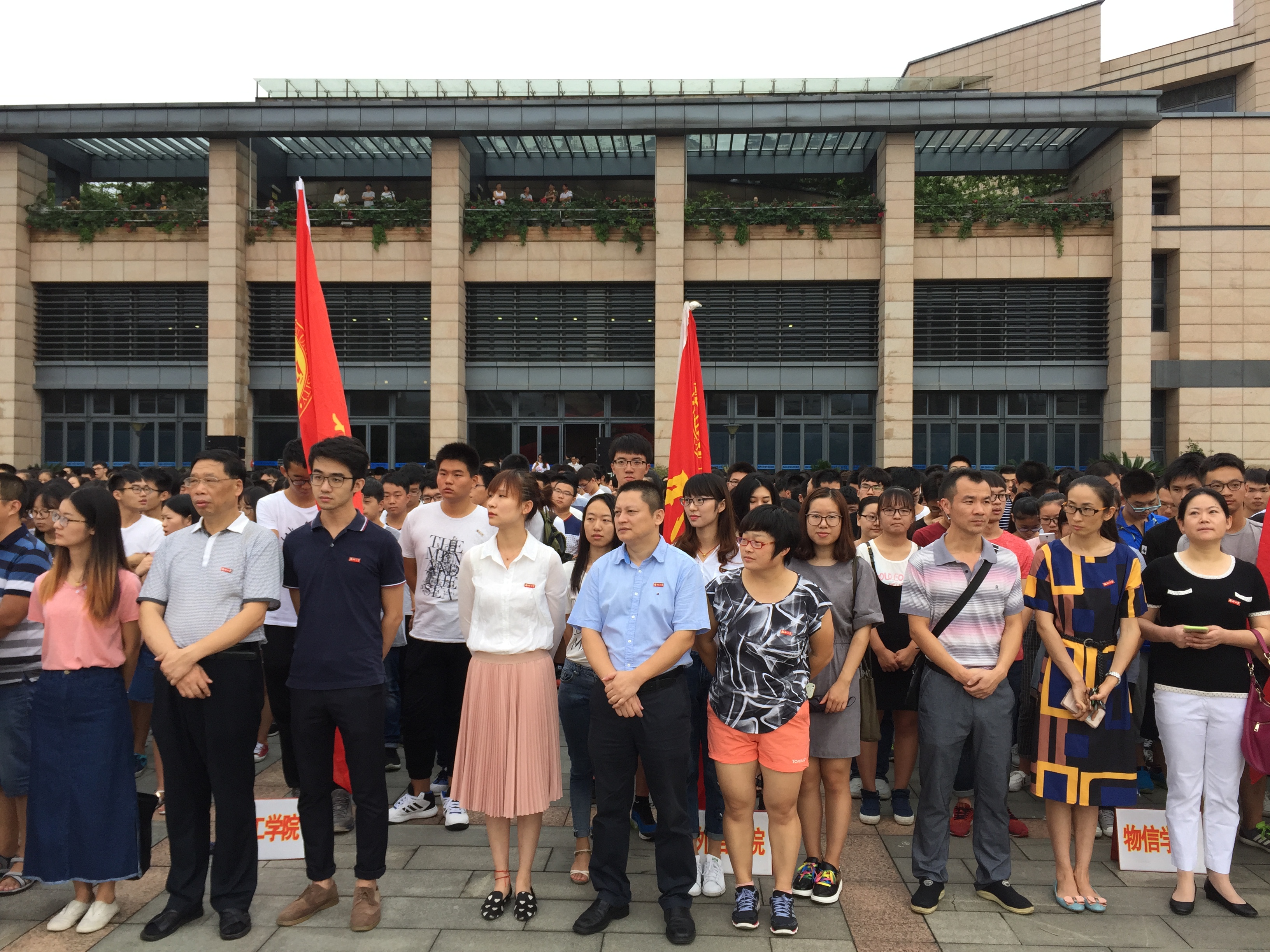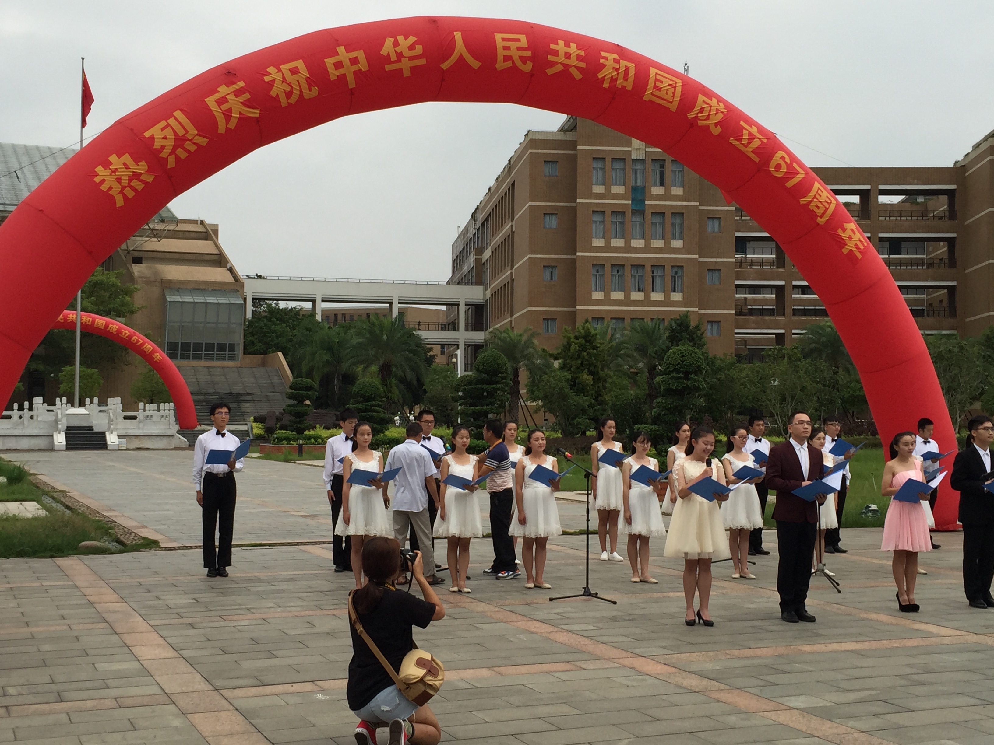 10月1日早晨,为纪念中华人民共和国成立67周年,emc易倍体育app部分师生齐聚旗山校区福万广场,举行隆重的升旗仪式。emc易倍体育app党委周强副书记,院团委书记林昕老师,以刘燕老师为代表的各级辅导员2016级外院全体新生参加了本次升旗仪式。