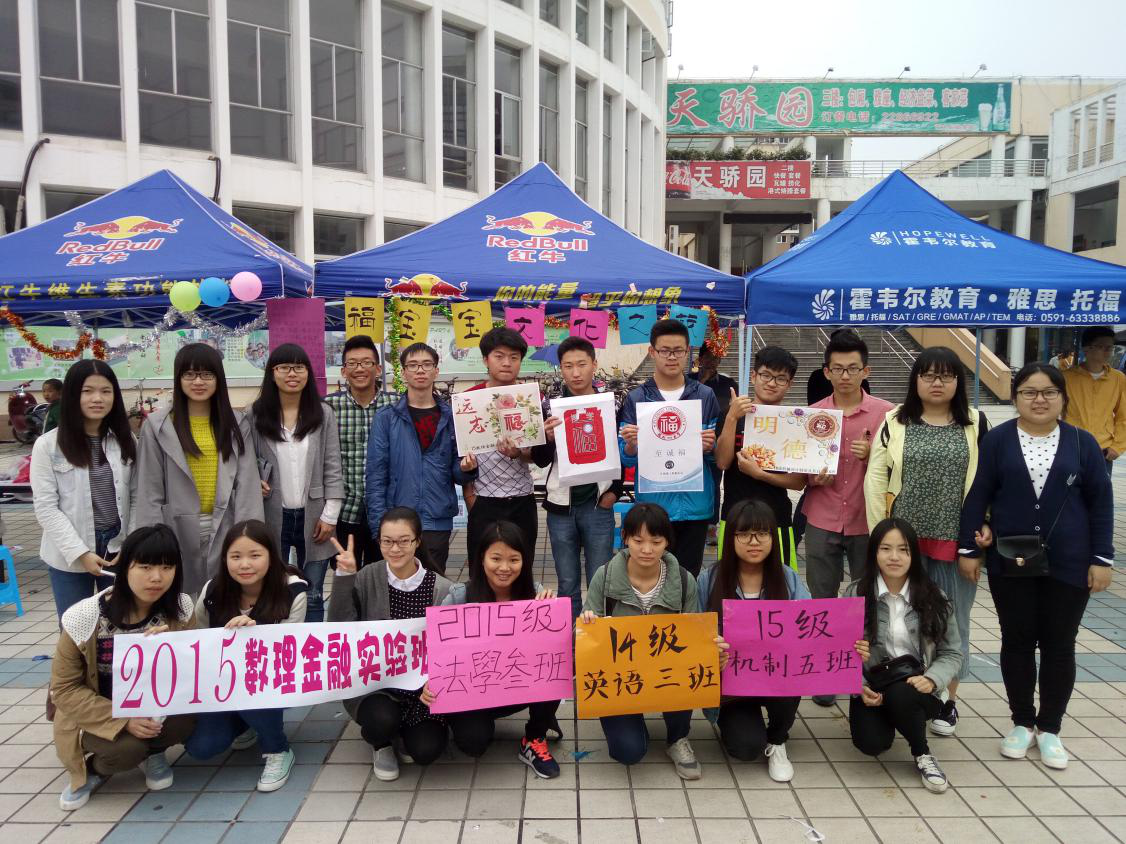 为深入贯彻落实党的十八届三中全会关于完善中华优秀传统文化教育的精神,emc易倍体育app2014级英语3班团支部携手2015级法学3班、2015级机制5班与2015级数理金融实验班,于4月9日在青春广场共同举办“福宝宝文化之旅”主题闯关活动。