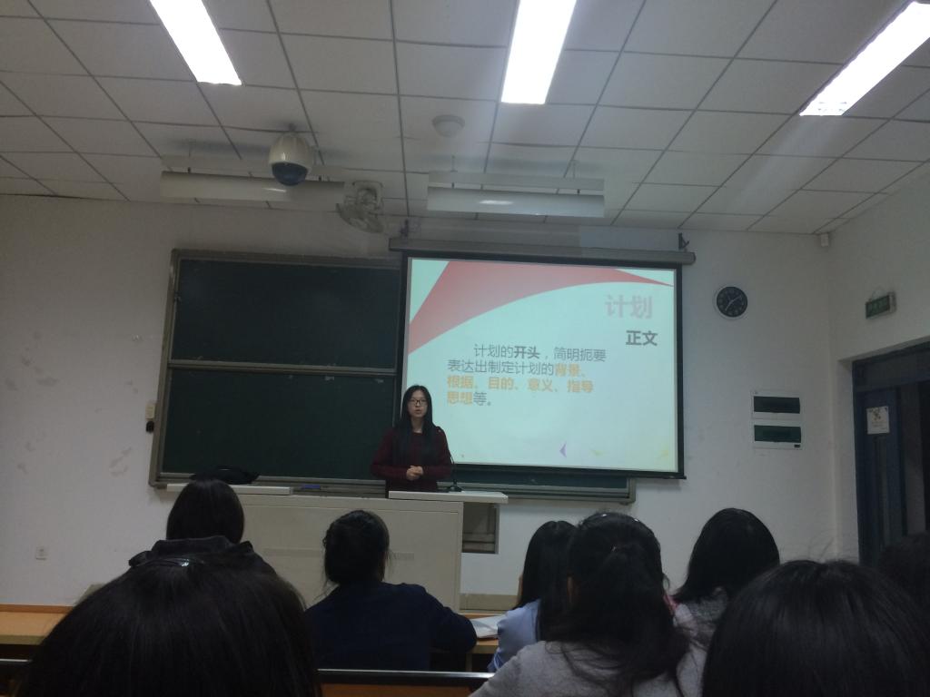 11月21日晚7时,emc易倍体育app组织部在文1-105进行了第一次班干部公文写作培训。emc易倍体育app2015级班委,2014级班委以及各部门成员积极参与。emc易倍体育app团委副书记姚晓晴对公文写作进行了深入的讲解本次培训,外国语团委副书记对于“计划”、“策划”、“总结”等多方面进行了详细阐述,并且传授利用微博等网络媒体来增强活动宣传力度的方法。在讲解的最后,姚晓晴副书记还对于参与培训人员进行了随机提问,极大地提高了参与人员的积极性。