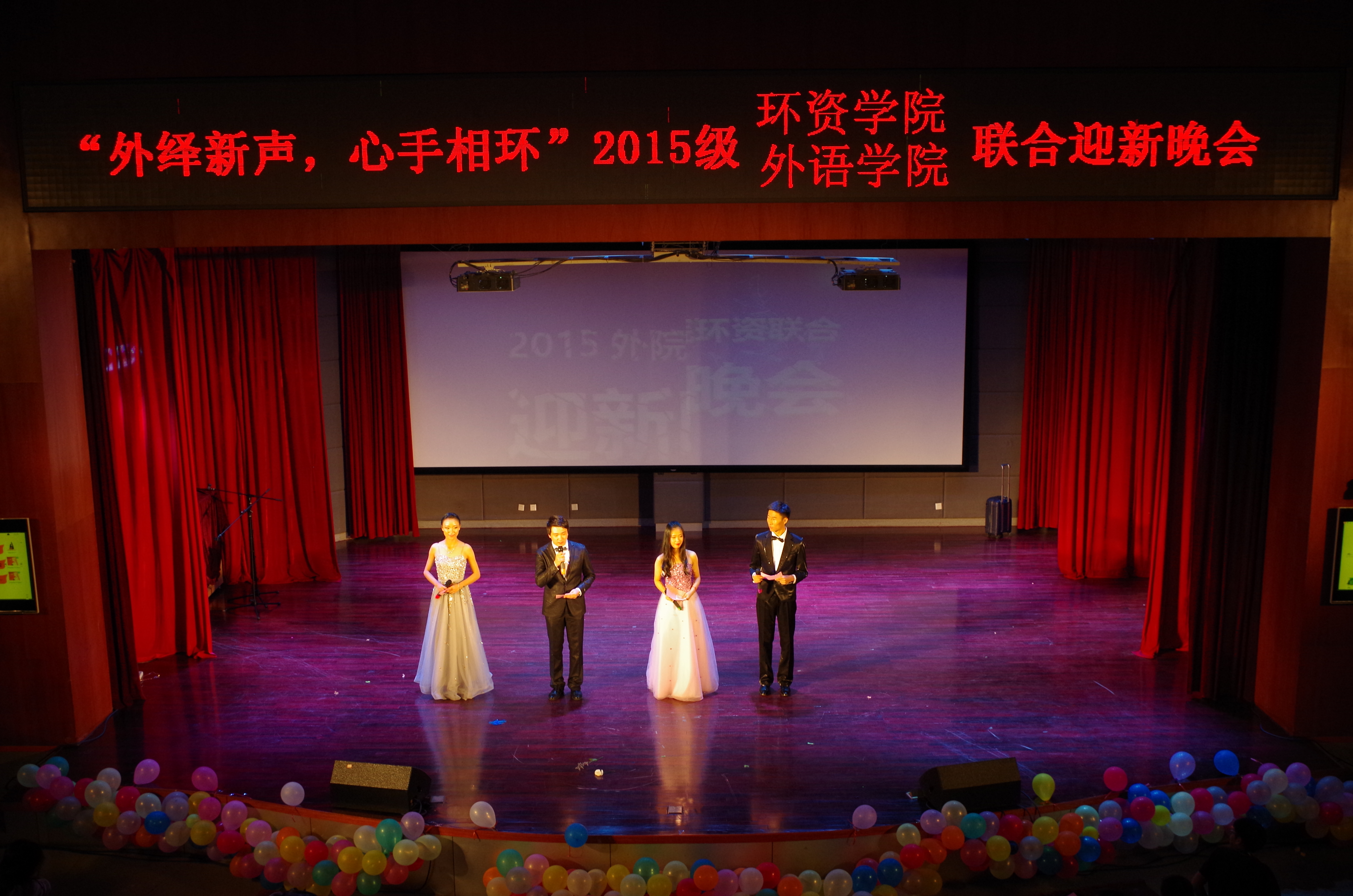11月10日晚,由emc易倍体育app、环境与资源学院共同主办的“外绎新声,心手相环——2015年外院、环资联合迎新晚会”在博学厅隆重举行。出席本次晚会的嘉宾有emc易倍体育app党委倪朝兴书记、环境与资源学院党委王秀萍书记、emc易倍体育app党委周强副书记、环资学院院党委蔡剑英副书记、emc易倍体育app团委书记林昕老师、环资学院团委黄永斌老师以及各年级辅导员。
