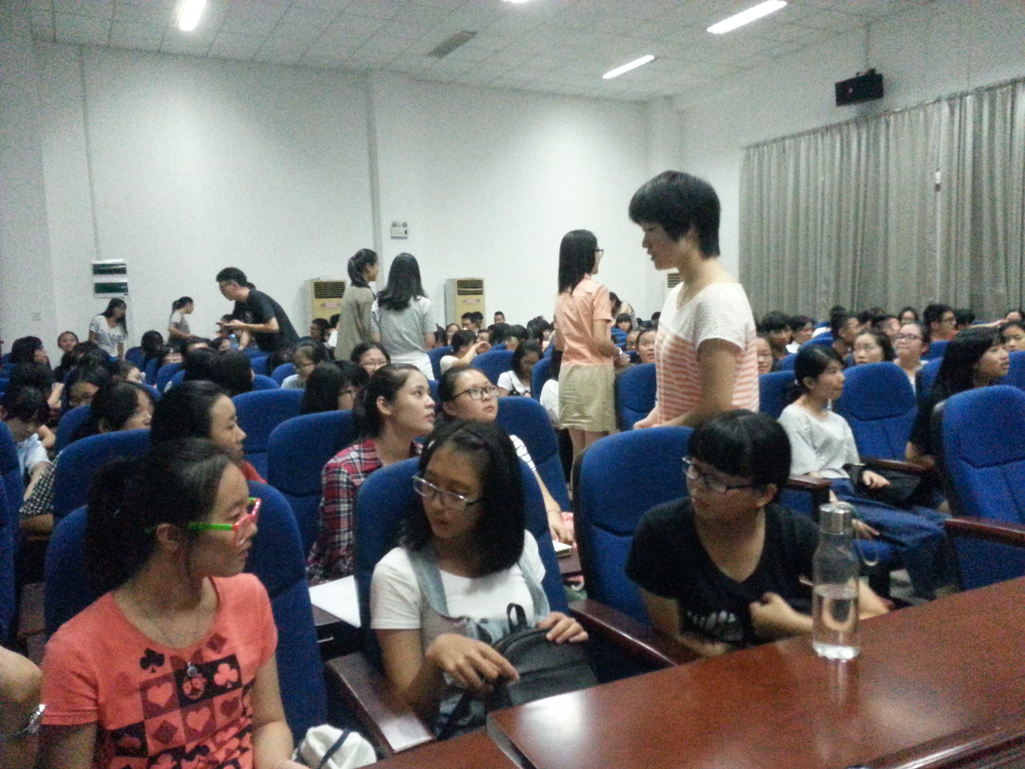 本次交流会邀请到本届emc易倍体育app团委学生会主席白雅佳、上一届学生会副主席陈捷、姜晓敏以及参与暑期社会实践三下乡活动的部分同学、出国留学返校的学生代表,他们依次与2015级新同学们分享他们在大学的学习、工作、生活等方面的经验,也分享了他们在暑期实践和出国求学期间的见闻。学生代表们以幽默风趣、平易近人的语言讲述着自己的经历,也给新生们提供了许多建议。同时,会议中也有新生问答、学生代表下台与新生们自由交流等环节,现场气氛格外活跃。