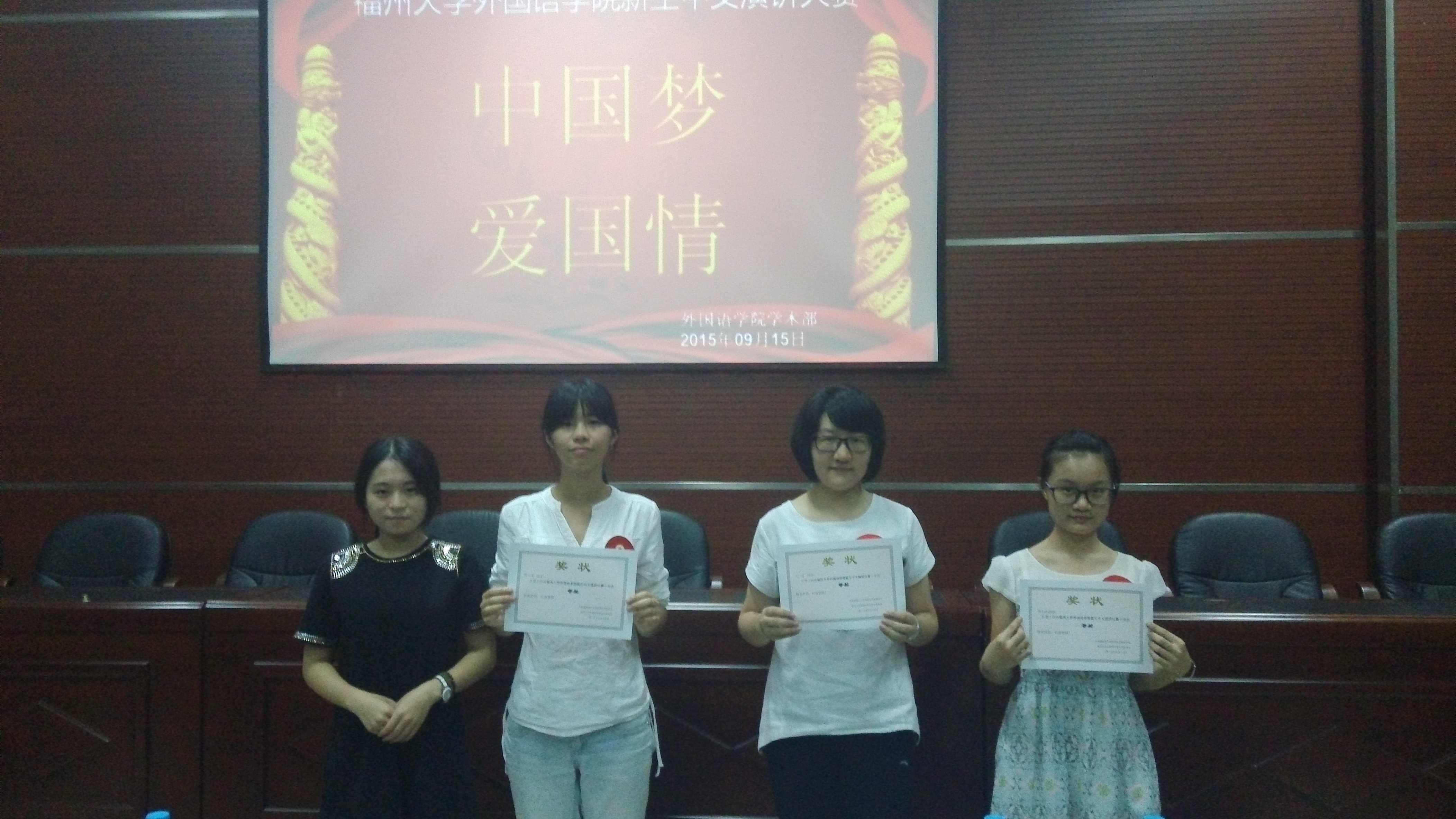 9月15日晚7时,emc易倍体育app在院办大会议室举办以“中国梦,爱国情”为题的新生中文演讲大赛,担任本次比赛的评委有2013级学生黄智婷,2014级学生张一佳、吕师涵。本次比赛吸引了很多同学前来观看,现场座无虚席。