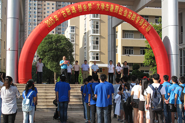 7月12日上午7点20分,外院“古田魂,革命情”实践队员们来到emc易倍体育app紫金矿业学院上杭教学基地广场参加实践启动仪式。赫然屹立的拱门上写着令人振奋的大字: “2015年‘古田魂,创业梦'大学生暑期社会实践专项行动”。此仪式共有6个议程,emc易倍体育app校团委副书记王三强老师,紫金矿业学院党委副书记余飞老师,紫金矿业学院彭向东老师等各位领导在台上先后讲话,预祝此次专项行动圆满成功;会后进行大合影,我院实践队还与王三强老师、余飞老师和彭向东老师合影留念。