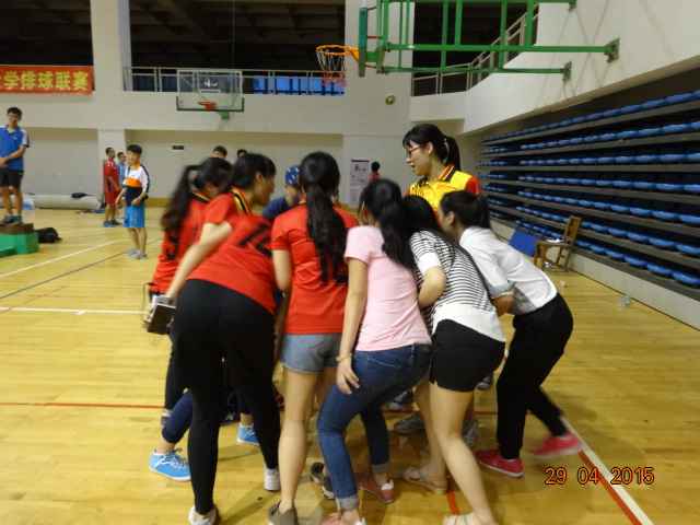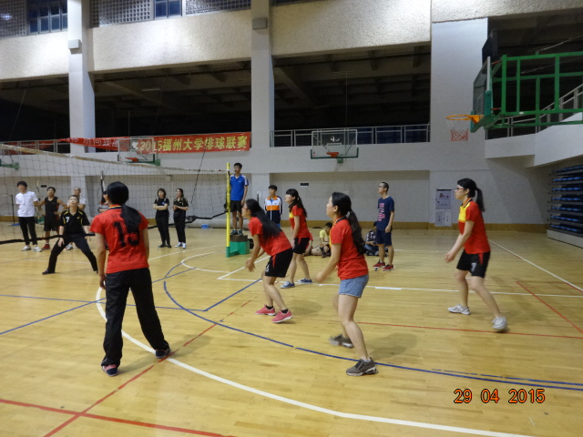 4月29日晚上,emc易倍体育app女子排球比赛半决赛在三区体育馆举行,本次比赛由emc易倍体育app对阵人文学院。比赛还没正式开始,双方都在场边进行着热身运动,教练也做着最后的战略部署,引来许多同学前来观看。