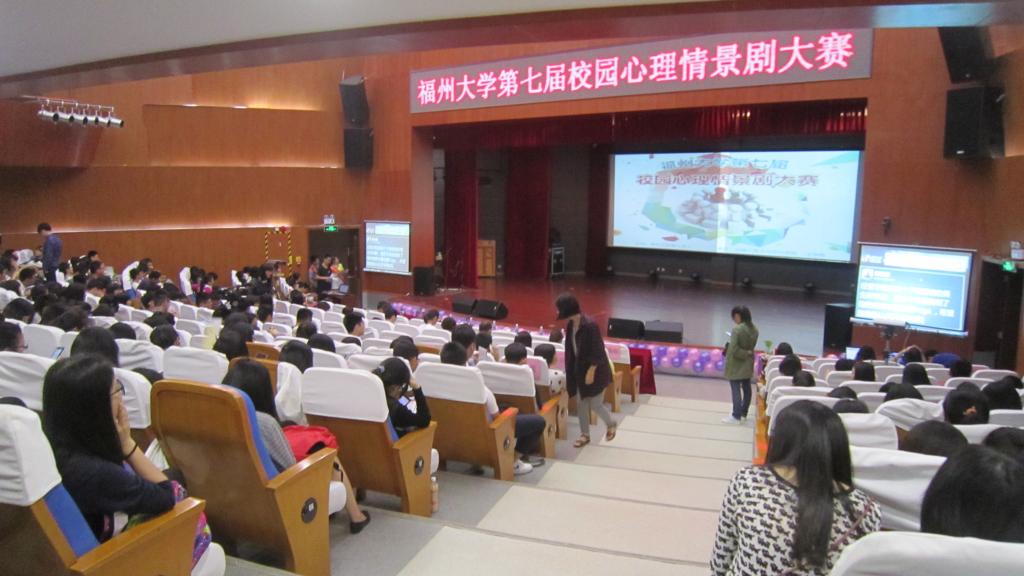 5月25日晚,emc易倍体育app第七届心理情景剧大赛在图书馆博学厅举行,来自外国语、化学、建筑、石化、经管和环资六个学院的心理情景剧剧组将依次在此倾情演出。比赛吸引了众多同学前来观赏,并且邀请到多位领导老师;莅临现场观看并担任评委,博学厅里座无虚席。