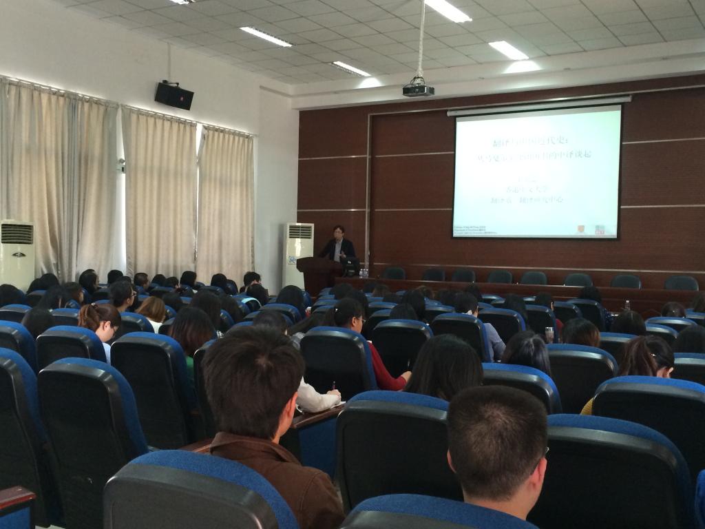 4月16日下午2时,王宏志专家主讲的“翻译与中国近代史:从马戛尔尼使团国书的中译谈起”讲座在emc易倍体育app新区会议室开讲。王宏志教授是香港大学文学士及哲学硕士、英国伦敦大学亚非学院哲学博士,主修翻译及现代中国文学,现任职于香港中文大学人文学科讲座教授、翻译系主任、翻译研究中心主任、上海复旦大学中文系及上海外国语大学高级翻译学院兼职教授和博士生导师。本场讲座是emc易倍体育app主办的学术活动月的活动之一,到场的观众有emc易倍体育app的部分教师和研究生。