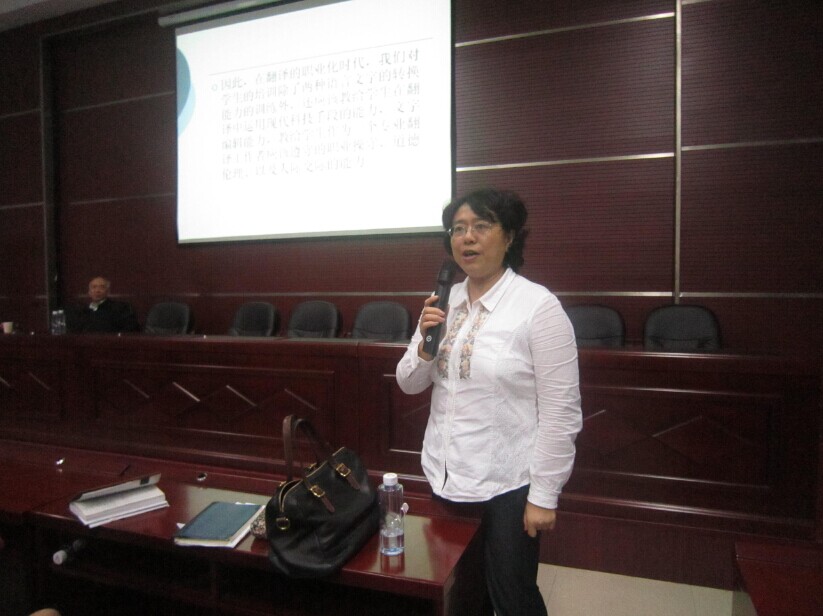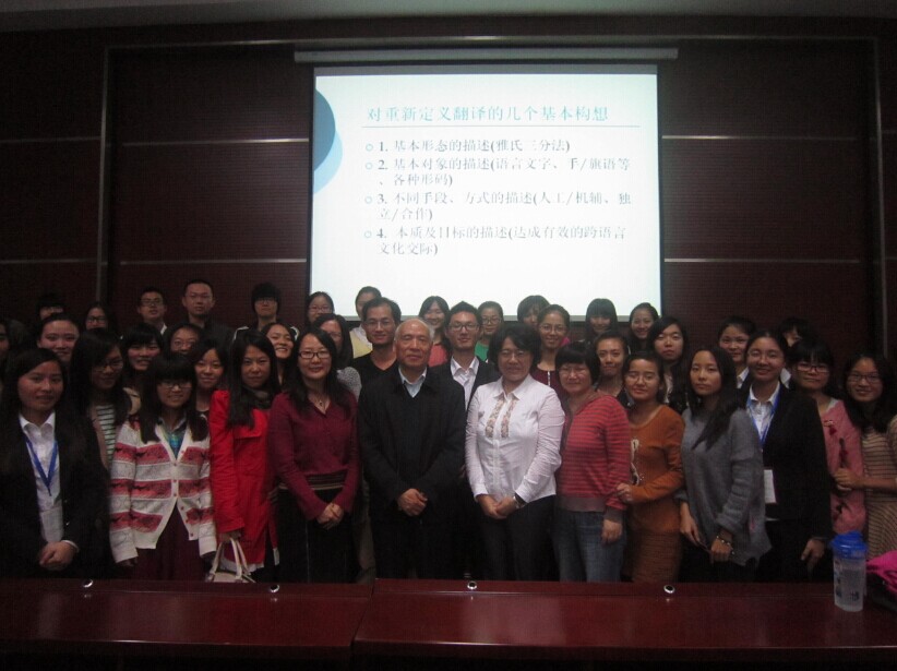 11月8日晚7时,由emc易倍体育app主办,现任上海外国语大学高级翻译学院翻译研究所所长谢天振教授主讲的《翻译的职业化时代:理念与行为》讲座在emc易倍体育app大会议室举行,emc易倍体育app院长潘红教授、院长助理赵婧老师出席了本次讲座。