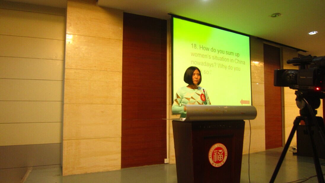 主持人介绍比赛规则并宣布比赛开始后,现场氛围便逐渐紧张起来。选手们逐一上台完成“定题演讲”、“即兴演讲”、“评委提问”三个环节。经历过学院选拔赛和校初赛,选手们在台上显得愈加自信和从容。他们的演讲充满激情和朝气,有的引经据典,有的现身说事,让观众深切地领会到了他们“Change the Unchangeable”的勇气和信心。面对评委的提问时则紧扣问题,展现自己良好的思辨能力与表达能力。来自emc易倍体育app的王苗子同学的演讲旁征博引、条理清晰,回答问题正面积极,很好地展示了她的演讲实力及控场能力,一举摘得此次大赛桂冠。而emc易倍体育app的黄智婷和经济与管理学院的刘后越也凭借不俗的表现,分别名列第二、第三。这三位同学将代表emc易倍体育app参加2014年“外研社杯”演讲赛福建省复赛。