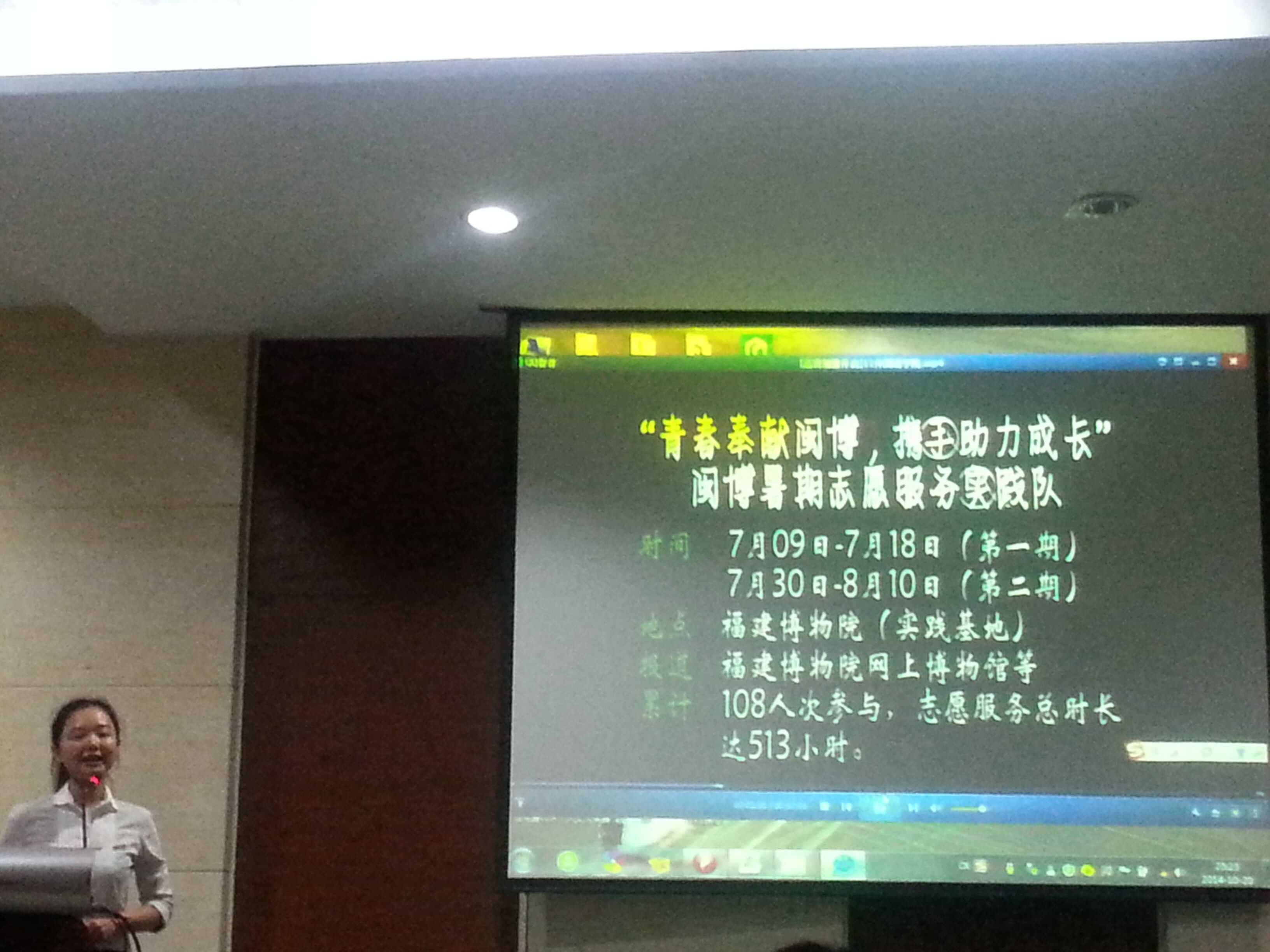 其中,emc易倍体育app用视频展示的方式,向评委与观众们展现了暑假以来学院社会实践成果。emc易倍体育app的农家书屋志愿者们积极投身于“农家书屋”的志愿者教学活动中,用最真诚、最温暖的心给“农家书屋”的孩子们送去关爱与知识。同时,与福建省博物馆长期合作的闽博志愿者团队为博物馆提供双语讲解,赢得博物馆的工作人员及参观游客的一致好评。各个学院的实践活动各具亮点,都在不同程度上赢得评委及观众的肯定。