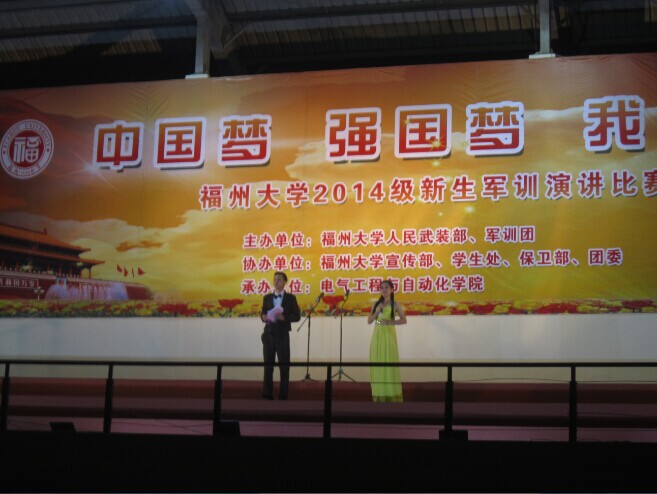 本次演讲比赛以“中国梦强国梦我的梦”为主题,共有17名同学代表各学院参加。比赛正式开始前,各营展开了拉歌竞赛,嘹亮的歌声将赛场的氛围烘托到一个小高潮。7时许,演讲比赛正式开始。来自各学院的参赛选手依次上台,他们在聚光灯前口若悬河,侃侃而谈,充分展现出了福大学子的风采。他们的演讲紧扣主题,关注时事,同时又充满思辨性。广阔的操场上响起一阵阵经久不息的掌声。