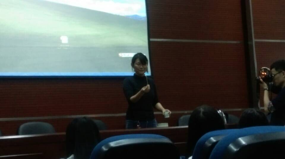 活动一开始,守屋久美子老师先向学生们介绍了日本茶道与中国茶道的区别。在得知日本泡茶是用茶粉而不是茶叶时,学生们眼里满是惊讶,也让他们对稍后的茶道表演更加期待。接着,老师向学生们介绍了日本茶道悠久的历史,并有条不紊地向大家展示茶艺。日本茶道不仅要求泡茶过程细致精准,在茶具的清洁和喝茶献茶的礼仪方面也十分讲究。最后,为了使学生能与日本文化零距离接触,老师还邀请了一名学生上台体验制茶泡茶的过程,亲自体验其中的魅力。