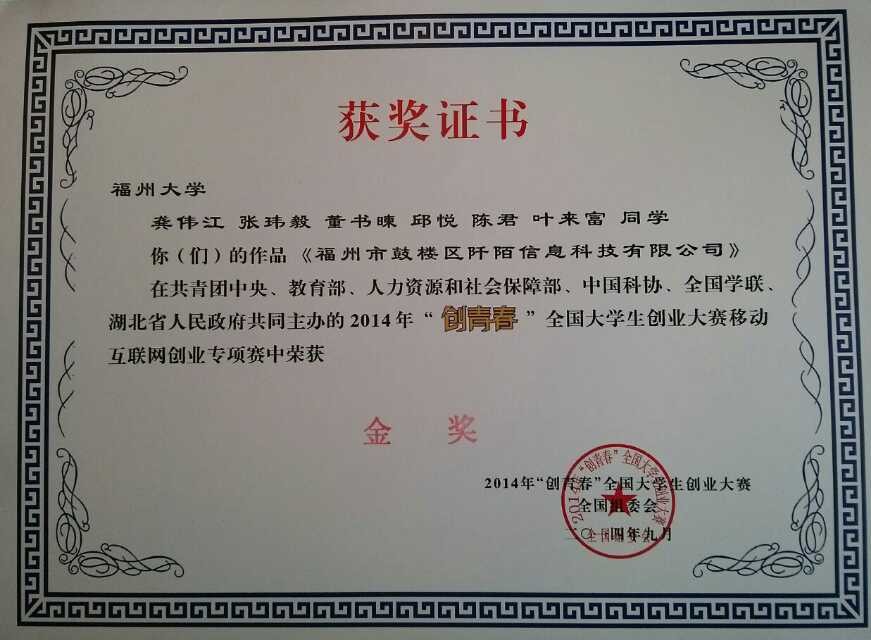 此次参赛的101支队伍都是来自全国各大高校的大学生互联网创业项目的精英队伍。这101个参赛项目在三峡大学进行项目陈述、PPT展示并接受30位评委的问辩,并在最终选出30个金奖得主。emc易倍体育app11级英语系学生龚伟江带领的福州市鼓楼区阡陌信息科技有限公司一举拿下此次移动互联网创业专项赛金奖。在此次决赛中,共有101支队伍来自全国各大高校的大学生互联网创业项目的精英队伍,最终由龚伟江的团队“阡陌云印”经过层层选拔,多次较量后成功在众多队伍中脱颖而出,拿到了一金一铜的好成绩。