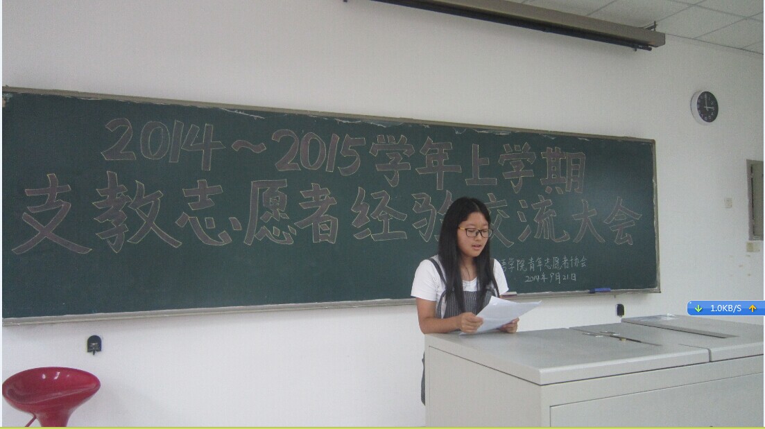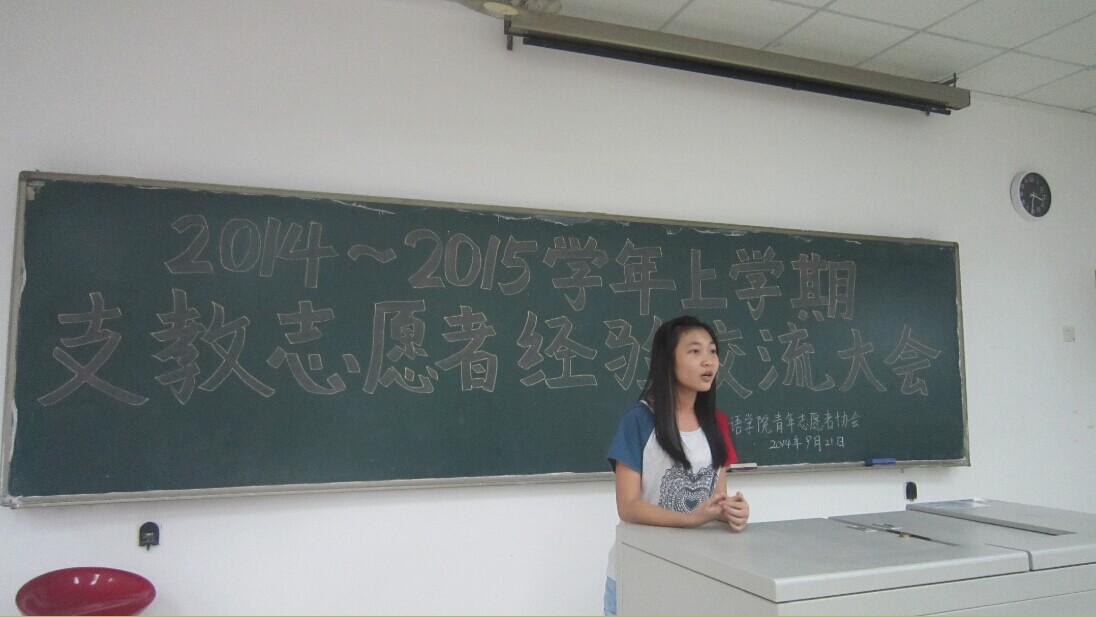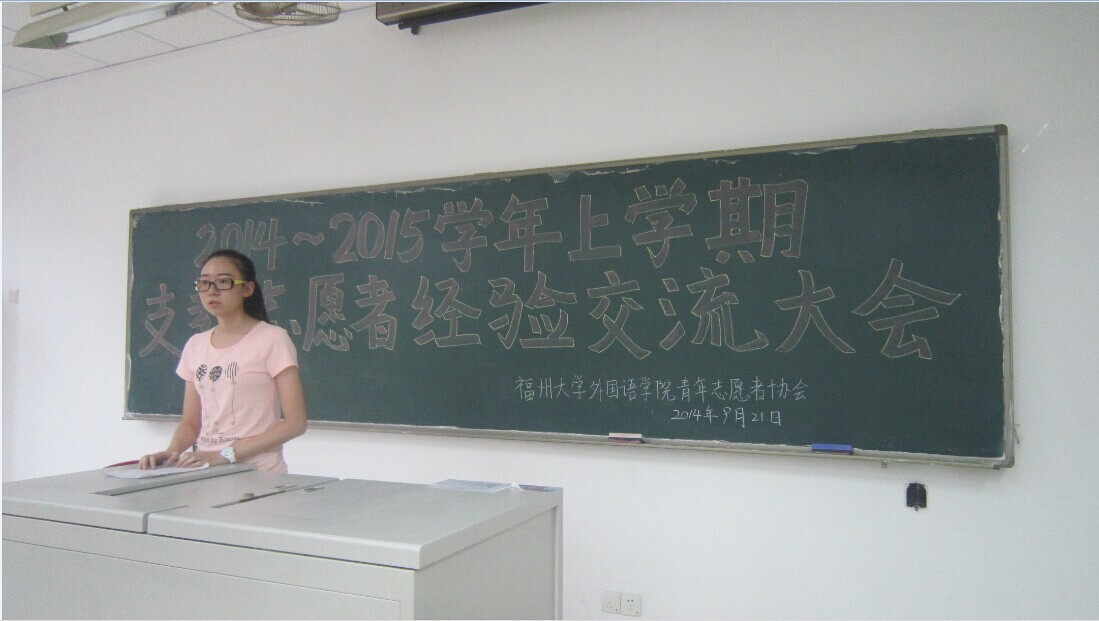 在本次志愿者支教经验交流大会中,首先由青年志愿者协会美岐小学、福州三中及同人机构负责人吕雅欣和农家书屋负责人杨煜简述支教学校的基本概况。接着,由青年志愿者协会支教负责人陆吟讲解《支教志愿者管理条例》,对新的有志愿支教的同学提出时间、考勤、仪表、备课等方面的要求,并概括地介绍教学工作的注意事项。新一批的志愿支教的同学们专心听讲,不时做着笔记。
