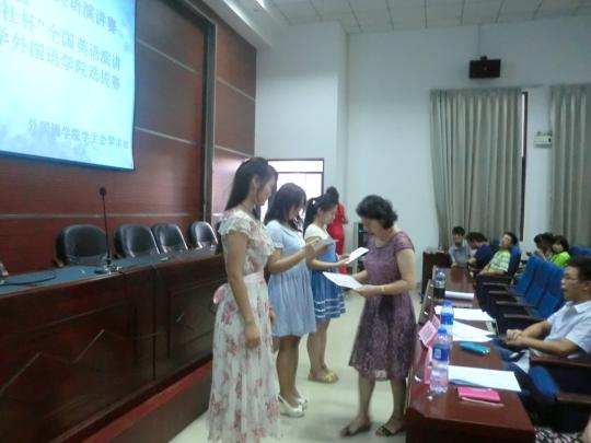 下午2时30分左右,比赛正式拉开帷幕。此次英语演讲选拔赛分为三个环节——定题演讲、即兴演讲、问题回答。比赛时,选手们各显其能,发音标准,口语流利,语调抑扬顿挫。或慷慨激昂、或风趣幽默的演讲,良好的临场发挥和应变能力,令观众深深折服,一次次将比赛气氛推向高潮。值得一提的是,不少13级新生上台演讲时毫无胆怯,自信满满,声音时而高亢洪亮,舒缓轻柔,感情表达的淋漓尽致,博得台下阵阵掌声。演讲比赛完毕后,三位评委对参赛选手们做出了精彩点评。最后,经过将近三个小时的紧张角逐,各项奖项尘埃落定——叶栩、王语嫣、吴雪晨三位同学获特等奖,叶承新、杨蕾、何倩三位同学获一等奖。