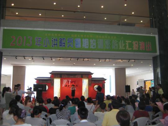 由于汇报演出的准备事项多,因此,志愿者们很早就来到了现场,帮小朋友们换装,给小朋友们鼓劲,做好准备工作。作为舞台场务后勤的志愿者们无法坐在观众席上欣赏小朋友们的精彩表演,志愿者们虽然感到可惜,但他们表示:"做好后勤,保证节目的顺利上演更为重要。”经过昨天的彩排,今天志愿者们对后台的工作也更加熟练,跟麦、搬道具、颁发证书等等工作,志愿者们都处理得井井有条,极大程度上保证了演出的成功进行。偶尔休息时,志愿者们在后台看着小朋友们在台上完美地展现他们的歌唱表演、文物解说、优美舞蹈等,他们都十分欣喜,也感到与有荣焉。台下的掌声一浪高过一浪,印证了小朋友们的精彩表演,这也让志愿者们和老师们倍感欣喜。