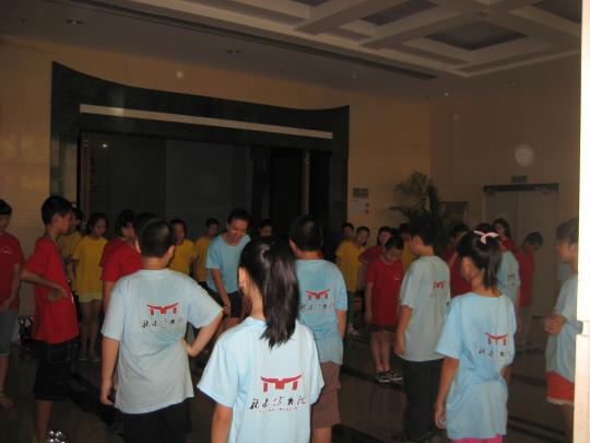 第二天的小朋友们将接受的是形体与普通话的基础教程。在上午的形体课上,小朋友们认真学习着老师展示的形体动作。而志愿者们也认真听课,尝试着把老师展示的形体动作做到规范,以便在今后的形体课上为小朋友们进行正确的形体指导,为老师们分担工作。形体课结束后,小朋友们继续接受普通话教程。虽然普通话的教授志愿者们不能参与其中,但志愿者们也没有忘记自己的职责,依旧在一旁听讲,关注着小朋友们的学习情况。在最后的展厅指导中,志愿者们也是积极主动的协助小朋友背诵讲解词,并将平日里自己的一些背诵的小技巧与小朋友们分享。