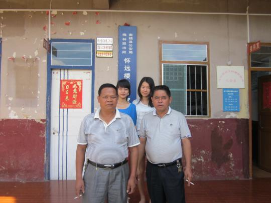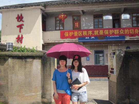 来到坎下村接待处,同学们有幸见到这里的村长和村支书。在同学们进行自我介绍和说明来访意图后,村长热情地泡茶款待他们。茶香弥漫之际,村长慢慢地跟同学们介绍起云水谣古镇。根据他的阐述,云水谣古镇原名长教村,全村只有唯一的一个姓氏——简。古镇居民之前一直以种茶为主,近几年旅游业大力发展,古镇的产业结构迅速升级,从发展主要第一产业过渡到着力发展第三产业。虽然村民们的生活水平提高了,但大家也不忘对云水谣古镇的保护。就此,村长向同学们介绍有关云水谣古镇的保护现状以及政府采取的保护措施,并且透露古镇未来的保护性发展计划。坎下村的领导们没有因为同学们是学生而马虎敷衍,而是十分耐心地回答采访问题,对同学们不了解的地方还做详细的解释。同学们被他们的热情好客深深打动,采访结束后即邀请领导们合影留念。