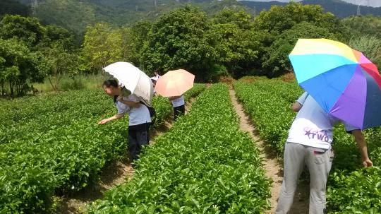 下午两点左右,同学们到达所属岐安村的一块农田。首先,映入同学们眼帘的便是一大片绿油油的茶园,瞬间被这纯粹而美丽的自然美景所震撼。这样生动的绿意也让汗流浃背的同学们暂时忘却了炎热。接着,同学们找到负责该茶园的农民伯伯,向他咨询了一些有关茉莉花种植的知识,了解到我们喝的茉莉花茶原来是经过诸多繁琐复杂的程序加工形成的。这让大家更加想投身到采摘茉莉花的工作中去。经过农民伯伯的示范以后,同学们个个饶有兴致,跃跃欲试,想要当回采茶男女。梅珍同学还将采摘的花放进她的遮阳帽里作为成果展示。大家纷纷表示,能够通过自身努力而帮助农民伯伯减轻烈日下的工作负担,感到十分充实。