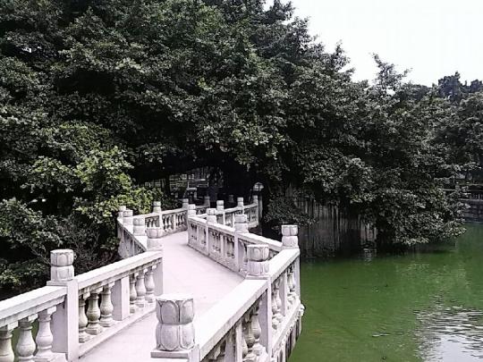 一进西禅寺,首先映入眼帘的是一大片,一大片的绿色,绿化可谓是令游客赏心悦目。更是有大片的湖水环绕当中,增添了分自然的美感。湖水之中,有鱼儿无忧无虑地优游,有乌龟懒洋洋的在晒太阳,甚是惬意。然而走在木桥上,乍一低头俯瞰,桥下的湖水已是一片浑浊,大概是无人料理,现已是一潭死水,浑浊不堪。在清幽美丽的环境下时不时还是会看见,在某些木桥,树上会刻有“……到此一游”之类的印记。为了更好地了解西禅寺的旅游业的现状,调查小组们还向当地的游客进行了询问。不少游客反映20元的门票价格过高。