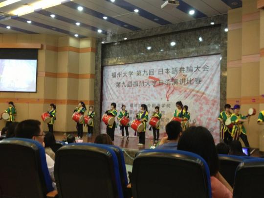 比赛间隙,日语系的同学们带来了精彩的表演。振奋人心的太鼓演奏伴随着整齐利落的舞蹈动作一下子就活跃了现场的气氛;优美的中国民族舞在音乐缓缓的流淌中让观众们如痴如醉;最后日语歌曲的独唱和合唱更是为此次比赛画下了完美的句点。