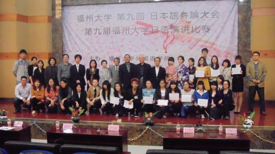 4月14日下午2时许,第9届emc易倍体育app日语演讲比赛在emc易倍体育app至诚学院科报厅正式举行。此次比赛由emc易倍体育app主办,至诚学院协办,吸引了emc易倍体育app和至诚学院日语系12位同学的积极参与。本次大赛的评委有福州市日本企业会会长福州泰昌汽车座椅开发有限公司总经理岩崎信也、長崎大学名誉教授井手啓二、井手ようこ、大田勝祐、前田角藏、越野優子等日本教授。这次比赛,吸引了日语系的一众老师和同学们前来观看。