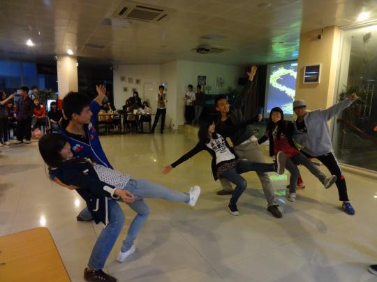 15分,在镁光灯的闪耀下,狂欢在酷玩街舞协会带来的劲舞下拉开序幕。劲舞过后,随着主持人的开场白,今夜狂欢舞会的华章开始一幕幕呈现。第一环节是“浪漫之旅”,首先由蔡贻杭同学带来精彩歌曲,带领大家进入一个青春美妙的世界,让大家带着轻松的心情投入狂欢中。随后的交谊舞环节,伴随着舞曲的旋律,众人的脉搏跳动起来,彼此间的拘泥感也渐渐散去。随后的游戏部分则掀起派对的第一次高潮,现场掌声连连,呼喊声一片。紧接着又开始了精彩表演以及“寻找你的另一半”、“火热的沙漠”等环节,每个表演及环节都精彩纷呈,一次又一次地调动起众人的热情、拨动众人的神经、掀起狂欢的热火大潮。最后,在近两个小时的狂欢后,派对在欢呼声中结束。