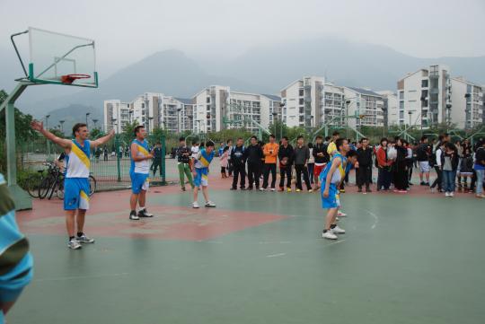 次日,emc易倍体育app又与阳光学院在三区风雨操场进行篮球赛。