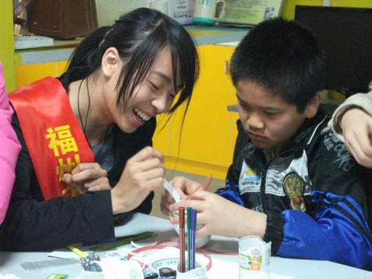 首先,志愿者们用PPT的形式向社区的青少年授课环保知识,提出保护地球母亲的号召,接着和他们一起动手——废物改造。全体青少年在志愿者们的组织下一起制作精美的笔筒,灯笼和纸自行车等手工作品。其次,在手工制作完成后,由部分青协志愿者将完成的作品记录并拍照,为之后的微博投票选举优秀作品做好准备,并便于后期的奖励。另一部分的青协志愿者则打扫现场,做后续的整理工作。紧接着志愿者们组织社区的青少年携带制作的手工作品合影留念。最后,全体人员听取七彩小屋负责人的总结谈话,本次活动在一片掌声中结束。