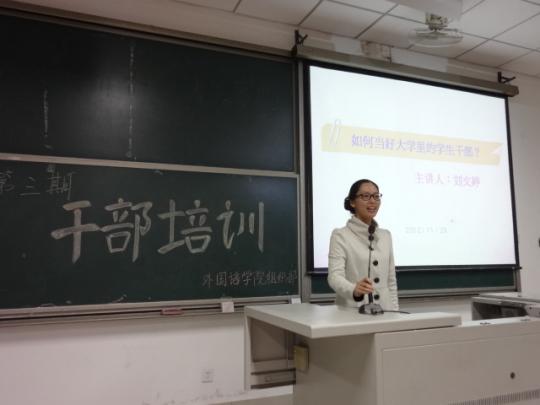 11月29日晚7时许,由emc易倍体育app组织部组织的第三期干部培训活动在文2-204顺利开展。此次培训旨在提高学生干部的工作能力与工作效率,引导学生干部如何做好学生工作并兼顾自己的课业。培训对象主要为emc易倍体育app全体11级和12级以及部分10级学生干部,本次培训邀请辅导员刘文婷与院学生会主席团成员分享干部经验。