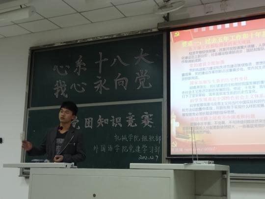 为热烈庆祝党十八大胜利召开,为树立当代学生永远跟党走的坚定信念,加强党员的党性修养,由emc易倍体育app党建学习部、机械学院组织部联合举办的“心系十八大,我心永向党”党团知识竞赛于12月7日晚7时许在文2-405如期举行。此次活动参与者主要为emc易倍体育app、机械学院12级的入党积极分子。活动邀请了emc易倍体育app10级党支部负责人苏梅芳和机械学院团委副书记陈明荣作为主讲人,以及emc易倍体育app和机械学院的学生会主席团成员作为嘉宾。