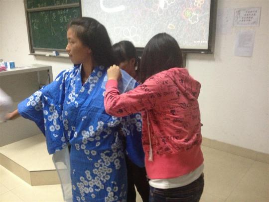 本次活动主要内容包括简单的日本语教学、日语相关的小游戏和和服和剑道服的试穿三个方面。