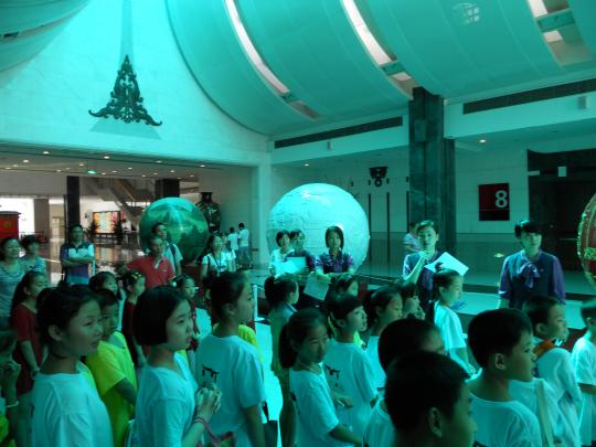 随后,小学员们在老师和志愿者的带领下,开始为最后一天的汇演排练节目。老师对小学员们的站姿、队形、语音、衔接等各个细节进行指导。虽然大家一遍又一遍地进行重复练习,但是孩子们都没有一位叫苦叫累,始终坚持着。
