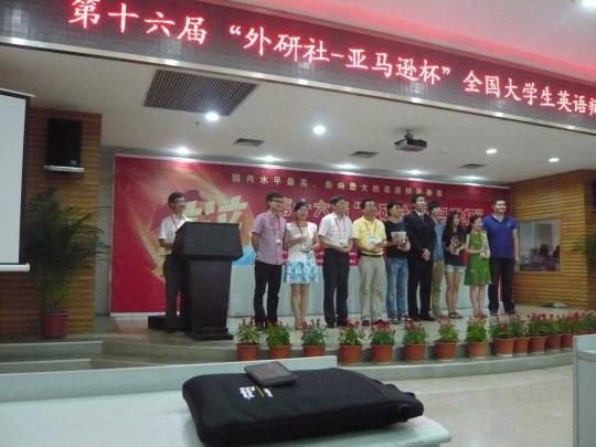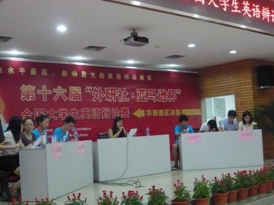 6月10日,第十六届“外研社•亚马逊杯”全国大学生英语辩论赛华南地区决赛在广州大学举行,此次决赛由来自中国、美国、新加坡、香港、澳门等近30名国际英语辩论界顶尖的专家学者担任评委,来自emc易倍体育app、厦门大学、深圳大学等在内的46支高校队伍、近200多名选手参加了此次大赛。我校emc易倍体育app10级学生孙芷芸在指导老师付磊的带领下与八方物流学院的学生石瀚代表我校参加此届大学生英语辩论赛。