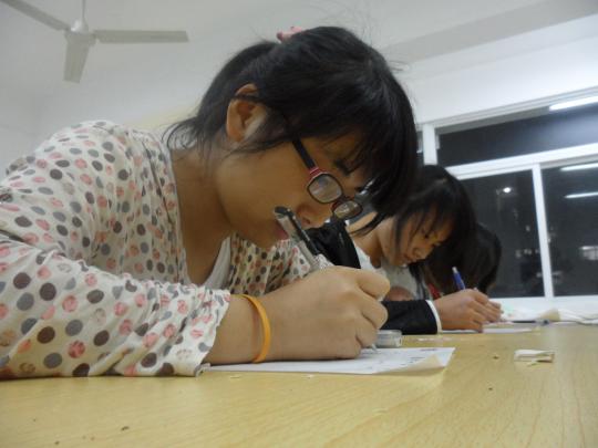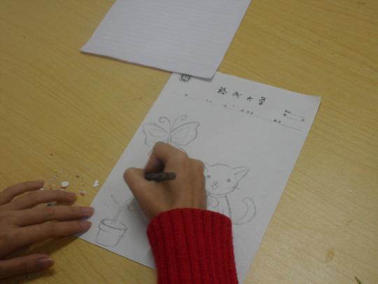 21时许,应试者陆续到场。每名应试者均被要求现场作画。虽未事先告知,但应试者们有条不紊,镇定自若,体现了良好的心理素质。虽不少应试者表示自己未经过专业培训,但他们精湛的画工不禁让在场工作人员赞不绝口。随后,由青协志愿者任考官对其进行面试。面对考官各种情景假设,应试者们各抒己见。有的落落大方,侃侃而谈;有的略微腼腆,但回答却体现出她们的深思熟虑。最让记者印象深刻的是,当考官问及如果孩子对自己的画功表现出自卑,希望老师帮助代画,志愿者该如何回应时,一名应试者表示:老师画的终究不是孩子们自己的东西,应该引导孩子们独自作画。由此可见当代大学生的成熟风范。