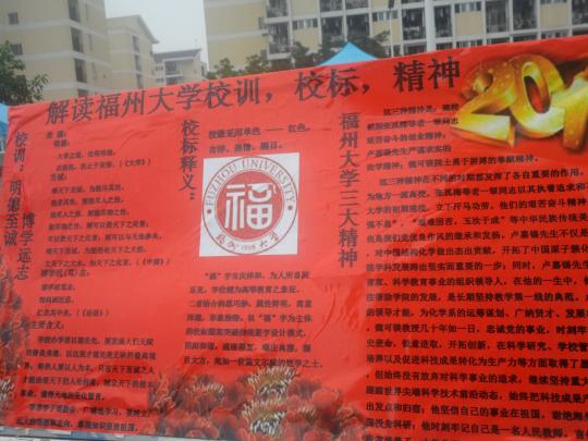 弘扬福建精神。为了让同学进一步了解福建精神,主办方在帐篷边设置四块喷绘展板,分别对emc易倍体育app、福大校训、校标和精神、福建精神和先进人物进行介绍和解读。福建精神既反映了福建独特的历史文化底蕴,又体现了时代发展的新要求。在大力弘扬以爱国主义为核心的民族精神和以改革创新为核心的时代精神,践行社会主义荣辱观的同时,大力弘扬和发展福建精神更有利于打牢福建人民团结奋斗的共同思想道德基础。先进典型人物如中科院院士吴孟超、优秀人民警察林海波等等的介绍也为同学们树立了学习的榜样,引导他们积极进取。此次活动最大的亮点是将福大精神与福建精神进行了很好的结合。福大精神中“艰苦奋斗”和“严谨求实”是建立在福建精神中“爱国爱乡”的基础之上;而福大精神中“勇于拼搏”与福建精神的“敢拼会赢”又有异曲同工之妙;“海纳百川”同样适用于福大学子,学习时应有海一样的胸襟吸收广博的知识。