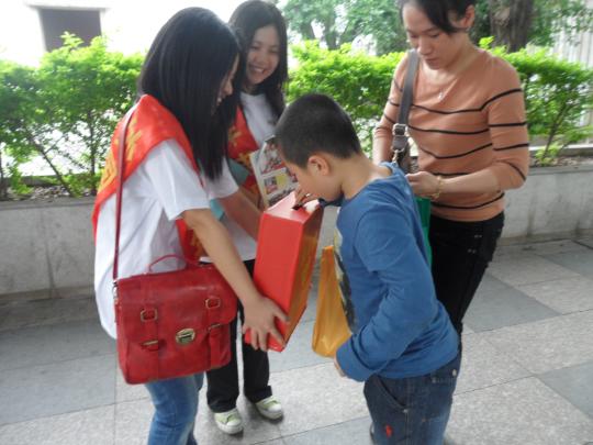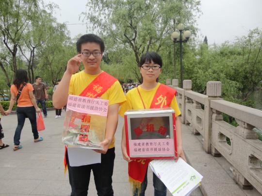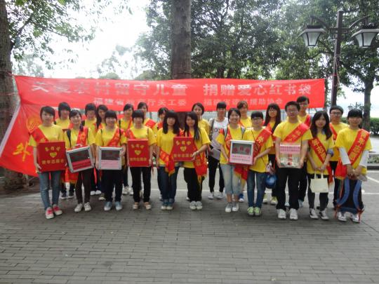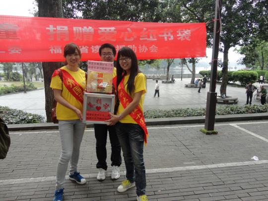 ,由福建省教育厅关工委德育中心、福建省读书援助协会主办,emc易倍体育app青年志愿者协会、红十字会承办的“爱心红书袋”募捐活动在西湖公园和东街口进行。本次募捐活动由福建省教育厅关工委德育中心的阮庭钟老师带队,共有来自emc易倍体育app的