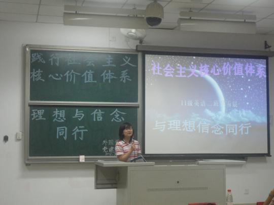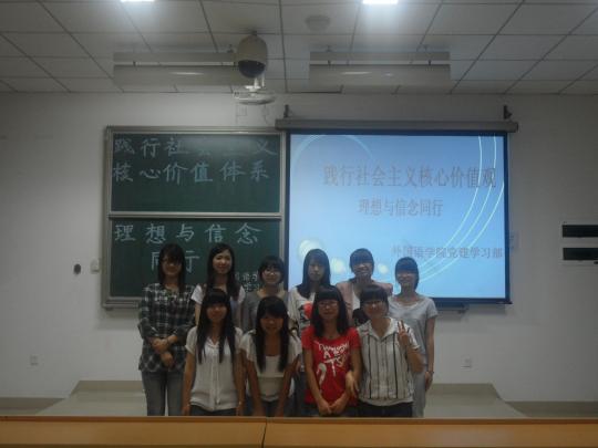 5月18日晚7时许,社会主义核心价值观PPT展示大会在文1-404开展,此次活动由emc易倍体育app党建学习部主办。大会有请党建部“社会主义核心价值体系”征文大赛六名获奖同学上台进行以“社会主义核心价值体系”为主题的PPT解说交流,参加大会的还有emc易倍体育app党员代表陆婉莉,林珊珊以及各入党积极分子,各班班委等。