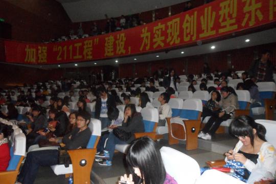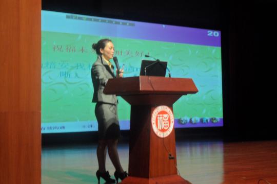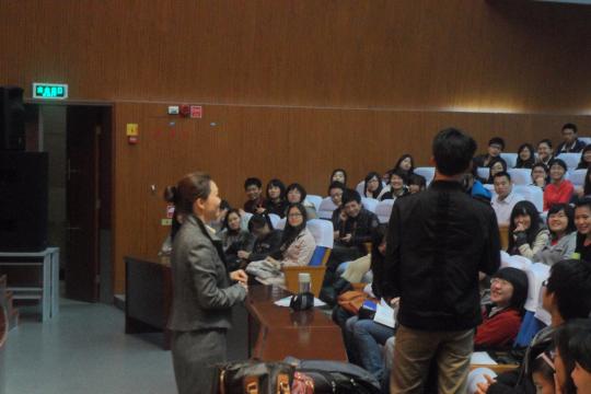 首先,朱玉华老师就着装得体这一话题开始今晚的讲坛,并与台下的同学们进行热切的互动。通过一些小活动,朱玉华老师让同学们了解到肢体语言中透露的信息,并教同学们如何挑选适合自己的着装。之后,朱玉华老师对举止文明,恰当礼节进行更加详细深入的讲解。她说,一个人的行为举止透露出这个人的品质修养,良好的举止和恰当的礼节会让人在竞争场中更具优势。最后,讲座在一首《我相信》中缓缓落下了帷幕。