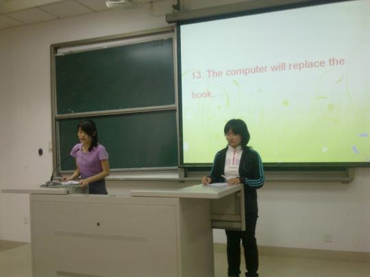 本次初赛采取即兴演讲的形式,参赛队伍各有4分钟时间准备题目。比赛正式开始,现场气氛紧张,参赛队伍选手抓紧时间准备自己的题目。此次比赛的题目样式新颖,均涉及当前社会的热门话题,包括人肉搜索,转基因食品,实名制和南海归属权等问题。这些问题在作为辩论题目的同时,也引起了在场所有人对于社会现状的深刻反思。参赛选手们在短暂的题目准备时间和高要求的英语口语能力的双重压力下,谈吐自如,条理清晰地将自己的观点一一阐述。同一队伍的选手必须各持正反两个观点,这无疑是对两位选手莫大的考验,也为这场比赛增添上一抹别具匠心的色彩。许多小组表现突出,得到评审的一致肯定。11时30分许,比赛在钟莉莉和熊正两位评审的点评中走向尾声,共有来自emc易倍体育app、材料工程与科学学院、法学院、八方物流学院等学院的8支队伍顺利进入一周后进行的校决赛。