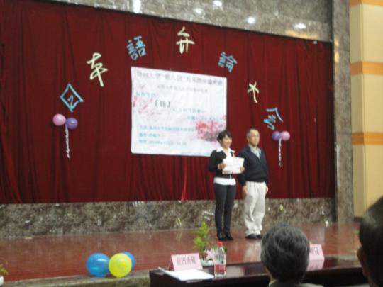 比赛历时约两个小时,最后在经过至诚再一次的精彩余兴节目后,主持人公布了比赛结果。最终,emc易倍体育app09级学生刘倩秀以优秀的演讲技巧和深刻的演讲内容博得了高分摘得桂冠,emc易倍体育app的09级的学生郑雪琴获得二等奖,emc易倍体育app09级学生李红和10级学生兰利芳获得三等奖。