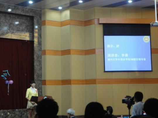 比赛以富有青春活力的舞蹈开场,之后,主持人对到场嘉宾进行了简短的介绍,至诚学院党委书记陈为旭和日语专业教师太田胜祐分别为比赛致辞。在致辞声中,比赛正式拉开帷幕。此次比赛参赛选手共有12人,来自emc易倍体育app和至诚学院emc易倍体育app的各占6人。比赛内容以“绊” 为主题,12名选手在演讲中纷纷结合亲身经历,通过讲诉与亲人、老师、好友甚至动物的故事发表自己对于“绊”的感悟,他们意气风发,紧扣主题,用流畅标准的日语充分体现了自己的青春风采。至诚学院参赛者演讲时举例多样、内容充实、各有各的风采,让观众听后深感贴近生活,产生共鸣;emc易倍体育app参赛者演讲时结构清晰,凝练有力,感情丰富,生动有趣,不时博得观众的掌声和喝彩。其中emc易倍体育app09级学生刘倩秀的演讲表现尤为出色,不论是她圆润的发音和流畅的速度,还是演讲里简洁易懂的内容和以小见大的事例都征服了评委与观众。