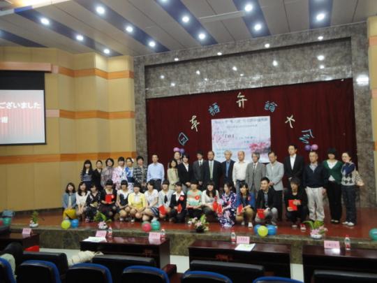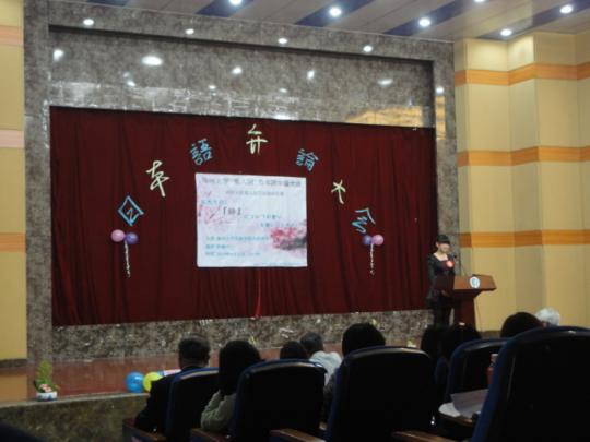 ,第八届emc易倍体育app日语演讲比赛于下午2时在emc易倍体育app至诚学院隆重举行。此次活动由emc易倍体育app和至诚学院联合主办,并全程由卡西欧上海有限公司赞助举行。福建富士通信息软件有限公司董事兼副总经理黒木専二、福州市日本企业会会长兼福州泰昌汽车座椅开发有限公司总经理岩崎信也、emc易倍体育app客座教授前田角藏等担任评委出席了本次比赛,emc易倍体育app党委书记倪朝兴、至诚学院党委书记陈为旭、emc易倍体育app副院长兼至诚学院外语系主任潘红等作为嘉宾应邀出席。