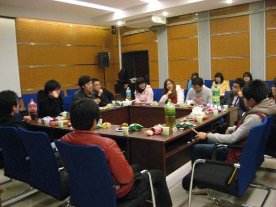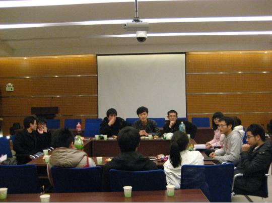 晚上7时,座谈会会正式开始。主持人于佳明首先发言,对此次会议的背景、目的等相关信息进行了详细的介绍。紧接进行的自我介绍环节,增进了学生干部之间的了解,促进了此次交流会的成功开展。最后进行的交流环节把座谈会引向高潮,各个学院的学生干部针对工作中共同面临的问题各抒己见,分享成果,在相互交流、相互学习、相互探讨、相互借鉴的基础上,积极探索新形势下学生工作面临的新问题,并积极寻求学生工作的新途径。座谈会持续两个多小时,会场气氛十分活跃,掌声此起彼伏。会后,参与人员集体拍照留念,并互留联系方式以便进一步有针对性地交流经验和解决问题。