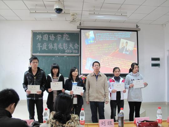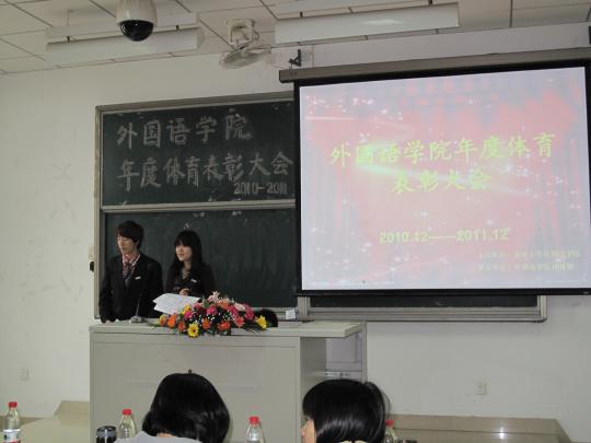 12月10日9时许,由emc易倍体育app主办,emc易倍体育app体育部承办的emc易倍体育app年度体育表彰大会在文一105举行。出席本次会议的有emc易倍体育app党委副书记刘旺、团委副书记周越、黄柑莲等辅导员以及学生会各部部长与来自emc易倍体育app的同学们。担任此次表彰大会主持的是吴永琪和张馥霖两位同学。