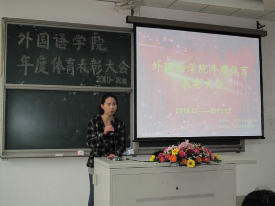 首先由汤丽霞同学向在场同学简明扼要介绍了两年来emc易倍体育app在体育方面所获得的成就,并对为其付出努力的领导和老师们表示深深的感谢。与此同时,她还表达了希望同学们今后在体育上再接再厉,再创辉煌的美好希冀。汤丽霞表示,参加体育的意义不仅在于获得优异的成绩,为学院争光,更重要的是锻炼自己,增强自身的身体素质。