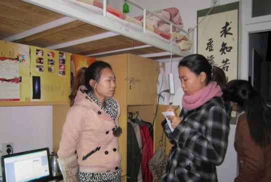 在刚刚落幕的校运会后,emc易倍体育app学生会主席李晓珊同学,副主席于佳明同学以及体育部部长汤丽霞同学于12月12日和13日到各个宿舍走访参赛运动员们。